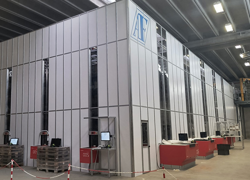 Dal 2017 ad oggi vengono introdotti 4 magazzini verticali automatici Modula. Alti 14 metri, sono in grado di movimentare oltre 456 cassetti in modo automatico. Questo investimento, oltre a raddoppiare la produttività di chi è impegnato al prelievo, grazie alla possibilità di preparare fino a 12 ordini in parallelo, consente di liberare 3,5 km di scaffalature, potendo contenere oltre 6.000 referenze al proprio interno. L’utilizzo della tecnologia “put to light”, consente di gestire il prelievo tramite visori ottici di ultima generazione.
